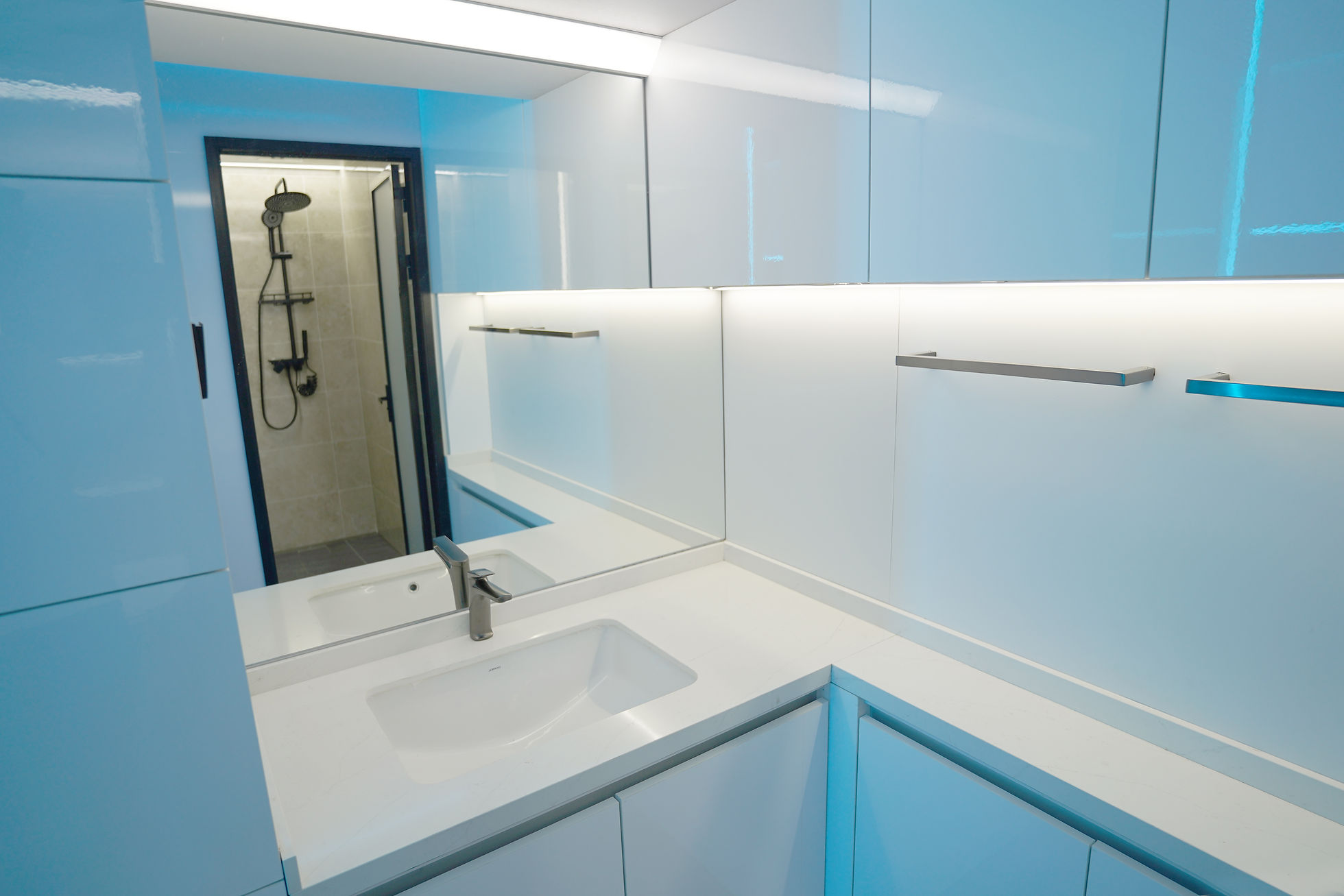 - 1 fürdőmodul (WC + zuhany + mosdó) – 1 szett